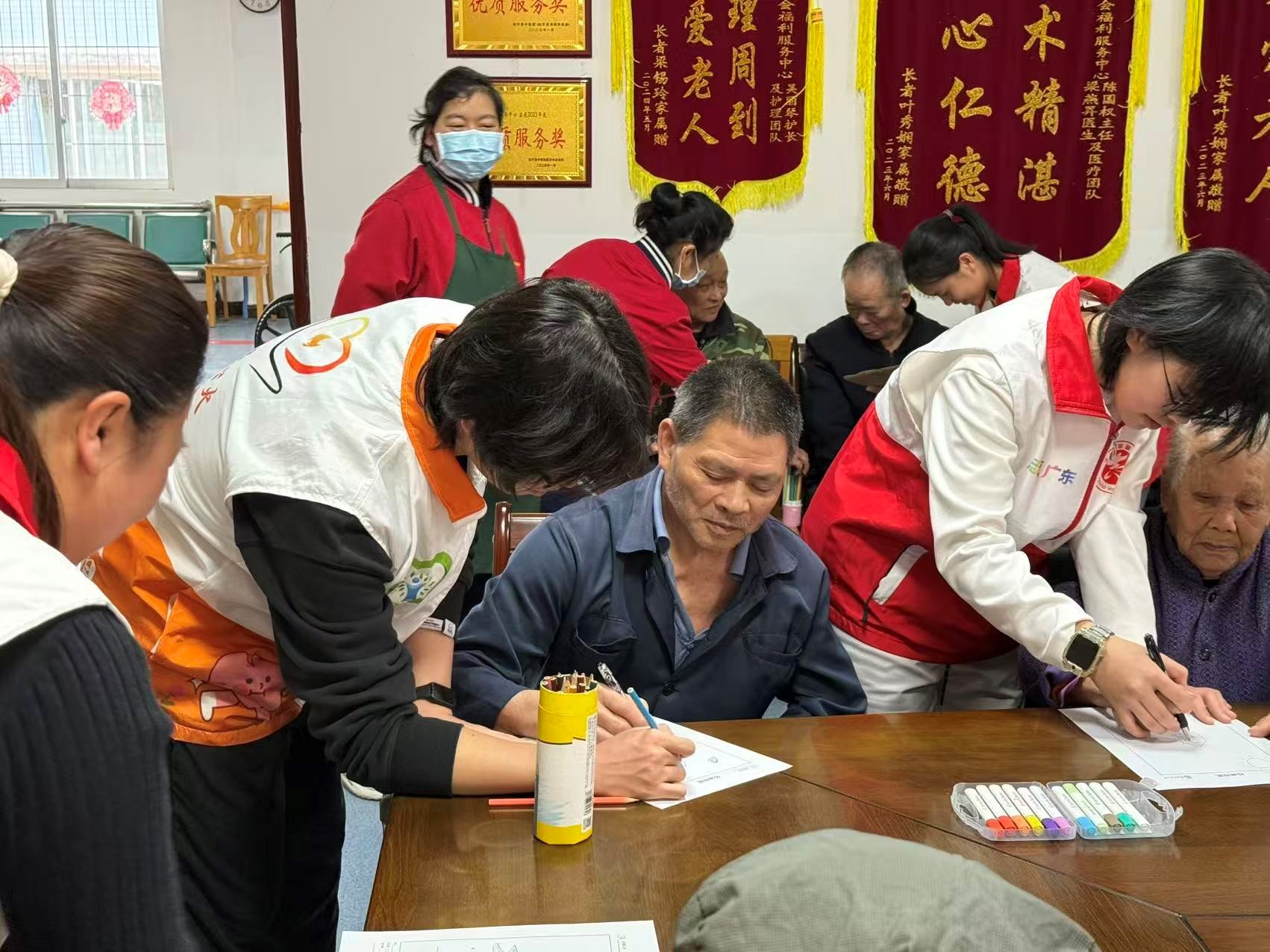 队员走进福利中心手把手指导长者作画